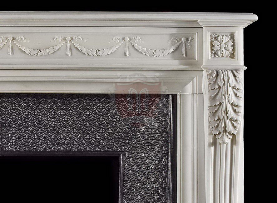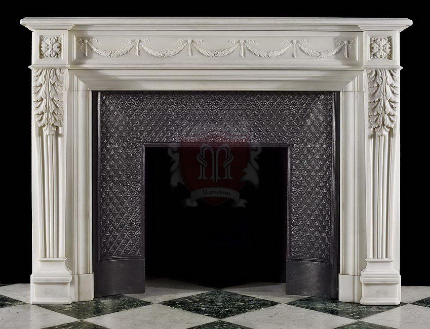 This marvelous antique Marble French Fireplace Mantel is from the 18th century British Royal Family Castle. This exquisite Old French Marble is the key to the antique look of this mantel. On the frieze is where your family motto can be carved and have a design or border around it. On the frieze are the carved ropes of leaves to show the meaning and beauty of this Victorian design mantle. Some leaves can represent a member of your family and have their names carved above the rope. During Christmas season keep the spirit alive by hanging stockings from the mantel shelf, or decorating your mantle. On each side of the frieze is a hand craved stone ornament. The legs of this Marble French Fireplace Mantel are hand carved and have a foliate design coming down the mantle. The leaves represent trust and wisdom, but they are also there to show nature. Each leg supports parts of your mantel and the weight. On the mantel corbel are hand carved stripes with the same stone, which run down your mantle legs for focus. Around the firebox, for the surround is a bronze plated metal ornament for extra protection of your mantle. This bronze plated metal ornament can be ordered separately in your order. Under the mantle you can place a hearth if you wish so that the heat of your fireplace does not ruin the beauty of your hard wood floor. You can also change the stone and customize this mantle