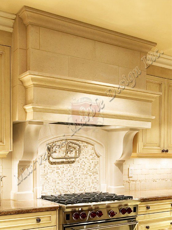 The columns terminate in some lovely strong corbels which can be interchanged with the shelves to enhance their overall effect. The Maurice Stone Kitchen Hood Design is sure to meet your style, look and feel perfectly.