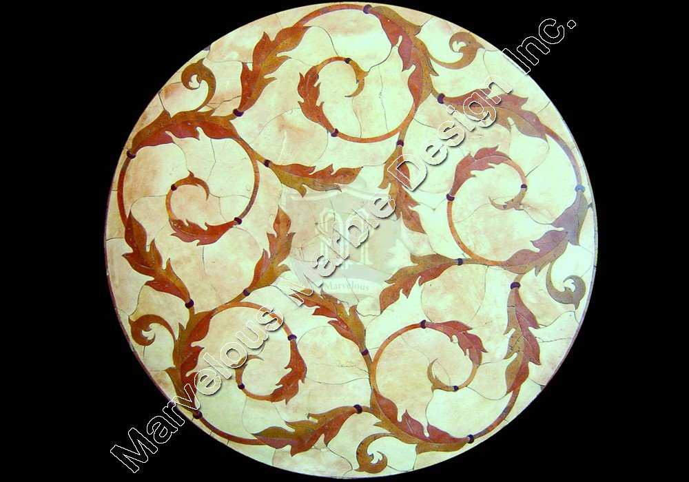 Romano waterjet cut round marble medallion is finely polished. This floor medallion comes in various sizes including 36”, 48”, 60” and 72”. In addition to these sizes, a custom size that best addresses your luxurious home’s needs can be provided. The colors can also be changed so that you get a piece that is truly a reflection of you.