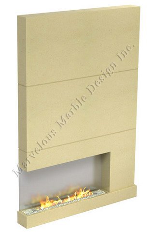 Roxborough is a New York style wall mounted fireplace mantel unit. It is constructed of limestone and can look like concrete to bring an ultimate modern feeling to your New York, Chicago, and Las Vegas style penthouse. The 3 sections of the fireplace are constructed so well by our masonry that the precision of the fireplace is just one of a kind. It is an alcohol burning fireplace. The alcohol containers are refillable and run up to 4 hours. The stainless steel back plate has a gorgeous reflection of the alcohol fire. The fire is at the bottom of the fireplace to bring warmth that travels throughout your entire apartment. You could place an LCD TV or painting over the fire to bring your own sense of style to the unit. At the bottom of the unit, is a hearth shaped design stone piece to complete your room and balanced the design. The sand glass or rock glass that the alcohol containers are placed on looks exquisite to anyone who sees it. The break proof glass around the fire is separate. But with the glass, you will have an ultimate protection from the heat. This can be placed on a wall or in the middle of your room with no trouble, since it is vent free.