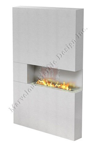 The unique design of Solaris condo fireplace unit makes it difficult not to look at it. Its elegant beauty brings out the best in your apartment. Its light weight design will not ruin your floor and can look great without weighing much. Its vent free design lets you place the unit anywhere in your condominium, but cannot be moved after installation. The alcohol burning firebox is eco-friendly. The alcohol containers can be reused several times after being thrown out. One alcohol container burns for 4 hours straight. This mantel consists of 3 sections, but can be made custom to fit your ceiling range height. The 2 large sections are 4 ft each and middle section is 1ft. Under the alcohol container is stainless steel, but can be changed to sand glass. The stainless steel back plate gives a beautiful reflection of the alcohol fire, and doubles the size of the alcohol fire, so it looks like you have a cavity in your wall for this firebox. The vent free design makes it easier for you, because you do not have to get someone to put up an air vent in your condo. The glass around the firebox is for protection, but is separately ordered. This pent house fireplace wall unit can be the focal point of your loft in Las Vegas, New York. You can design this unit by adding your own touch to it. An LCD TV would look great on top of the firebox and will bring your family together.