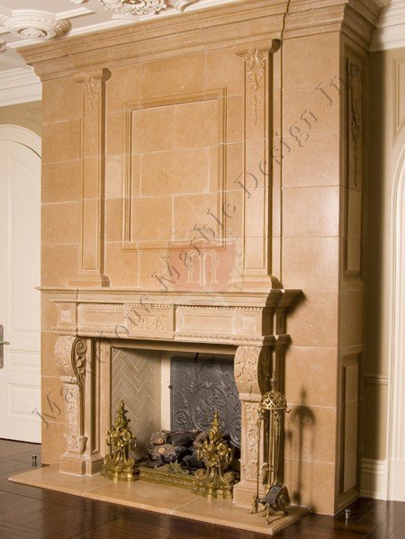 Vintage Limestone Fireplace Mantel Design