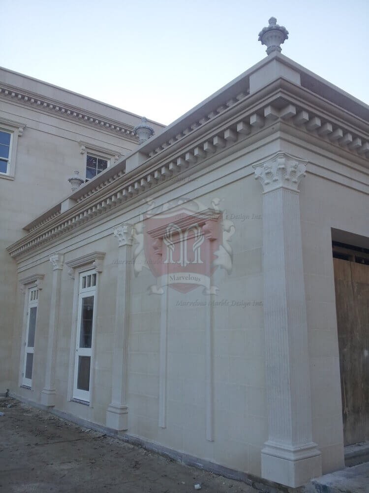This indiana limestone exterior design can be provided in any custom size to fit the needs of your luxury home. Depending on your taste of natural stone, this lovely exterior design can be designed in any natural stone of your choice including Spanish limestone, French limestone and Italian limestone. After all it is your space, so you can do anything you want with it. To learn more about Exterior Limestone Project 2, please call us at 1-888-272-0630.