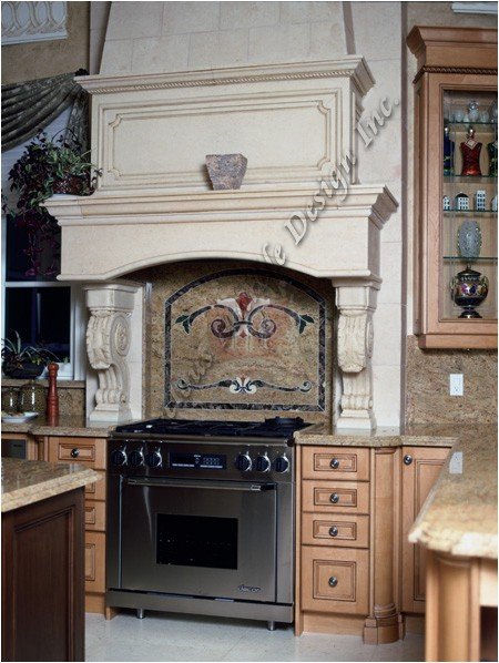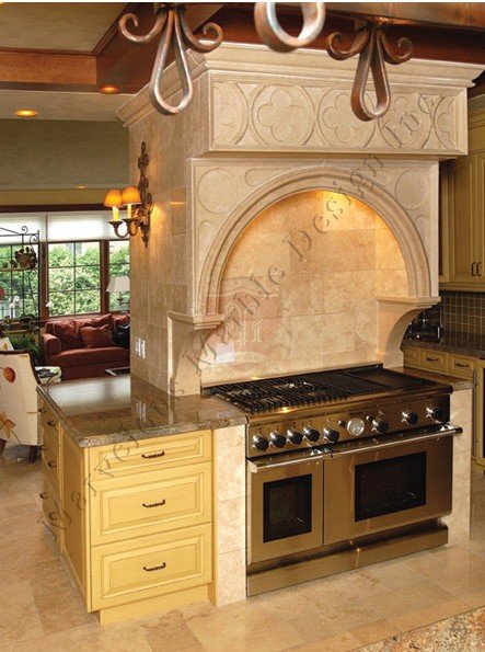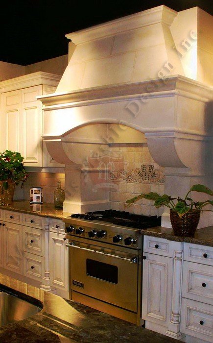 Del Fiore Stone Range Hood in 8 ft Ceiling